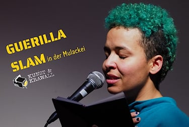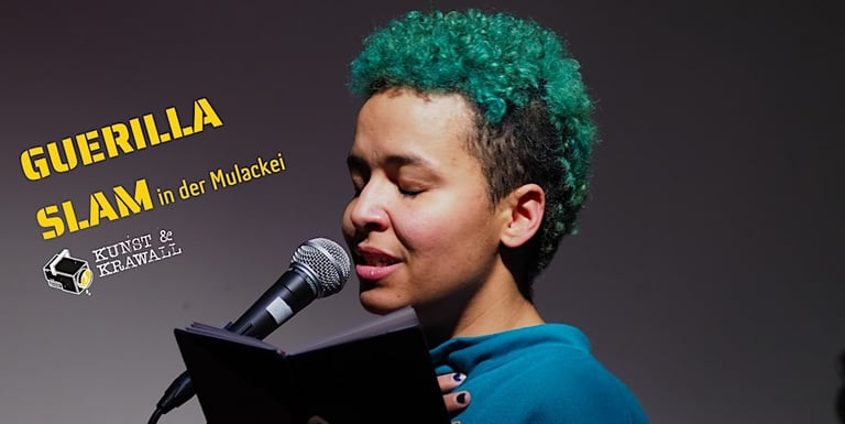 “Guerilla Slam is a poetry slam where different artists compete against one another with their pieces. Each performer has six minutes to convince the audience with both their presence and their words. Who wins? No one less than the audience decides! Come and experience for yourself how the spoken word can ignite and electrify an entire room.”